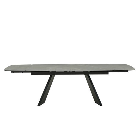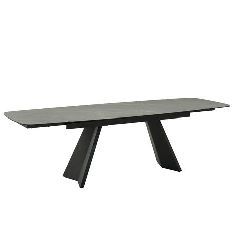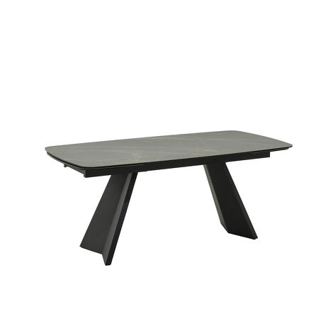 Обеденный стол раздвижной, отделка закаленное стекло с керамикой, черный металл, коллекция