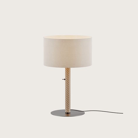 Настольная лампа Coco, отделка кожа Grey Taupe, черный матовый металл, абажур, коллекция
