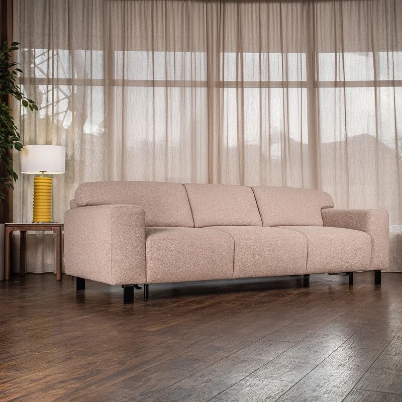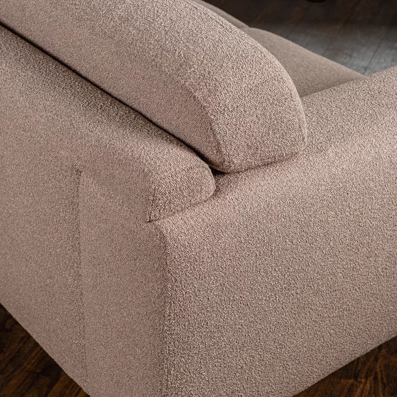 Обивка - ткань букле в бежевых тонах. Ножки в четном цвете.
