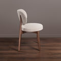 Каркас стула — МДФ и массива бука. Ножки стула из массива бука в цвете итальянский орех, обивка ткань букле в бежевых оттенках.