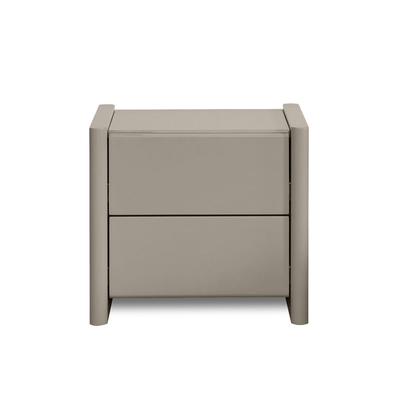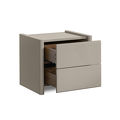Прикроватная тумбочка оснащена двумя выдвижными ящиками, которые обеспечивают комфортное и организованное хранение необходимых вещей под рукой. Ящики снабжены системой легкого открывания push-to-open: достаточно легкого нажатия, и они плавно выдвигаются, что делает использование тумбочки максимально удобным.