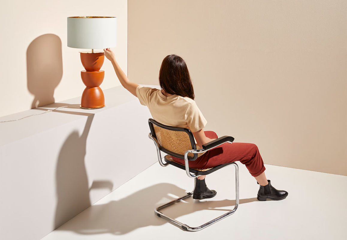 - Настольная лампа Metric, отделка керамика terracota, матовая латунь, белый абажур