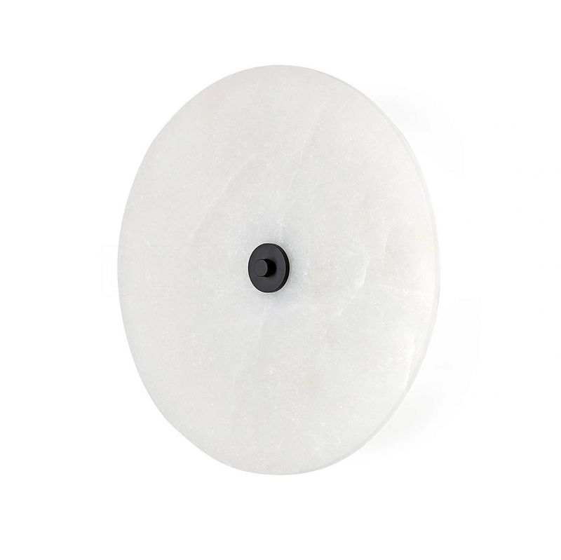 Бра Sual от испанского бренда Aromas del campo. Оригинальный светильник с минималистичным дизайном. Cтальное основание в черном матовом цвете дополнено декоративным диском из алебастра диаметром 25 см. Поставляется в комплекте со светодиодной лампой 9W 2700K.