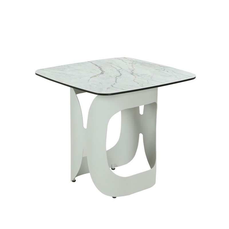 Столешница - стеклокерамика: закаленное стекло (8 мм) и керамика (3 мм). Необычное основание - высококачественный металл в отделке стойкой к внешним воздействиям порошковой краской светло-бежевого цвета.