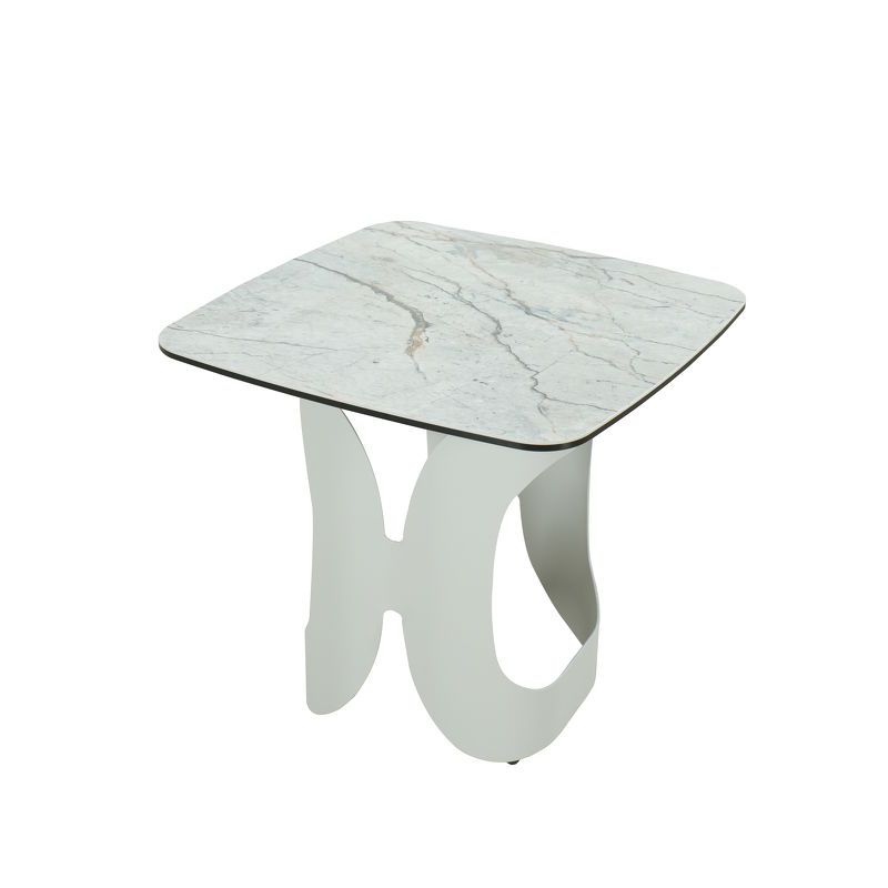 - Приставной столик, отделка топ 10mm стекло и 3mm HC008, ножки светло-бежевое порошковое покрытие S05