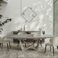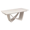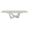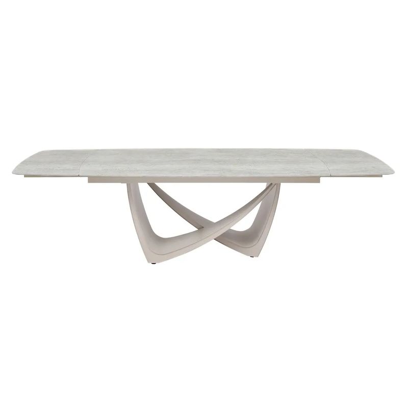 - Обеденный стол раздвижной, отделка топ 12mm спеченный камень C68-12, основание бежевое порошковое покрытие