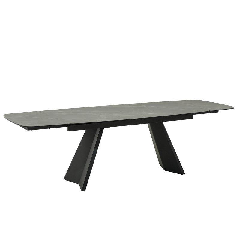 Обеденный стол раздвижной, отделка топ 8mm стекло с керамикой 3mm TL138, ножки черное порошковое покрытие MDI.DT.TOL.40
