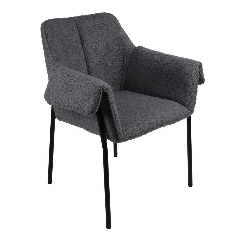 Обивка стула- ткань типа букле в серых тонах, каркас изготовлен из высококачественного окрашенного в черный цвет металла, наполнитель пенополиуретан высокой плотности.