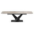 - Обеденный стол раздвижной, отделка закаленное стекло с керамикой, черный металл