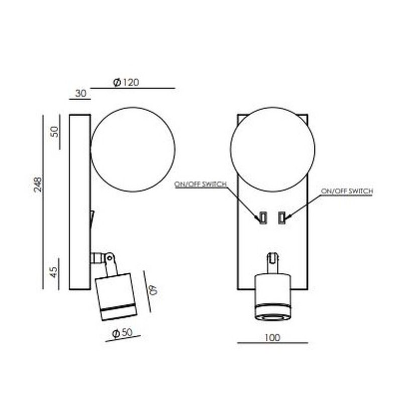 Бра Tea, отделка черный матовый, черный мрамор