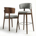 Полубарный стул Odelis с комфортной поддержкой спины, благодаря закруглённой спинке. Каркас и ножки стула выполнены из массива бука, в отделке итальянский орех. Сидение - из МДФ высокой плотности. Спинка - многослойная фанера. Обивка - ткань в серых тонах. Подножка - нержавеющая сталь.