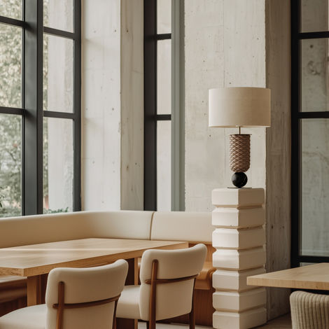 Настольная лампа Olas, отделка белый абажур, черный мрамор, керамика pale pink, коллекция