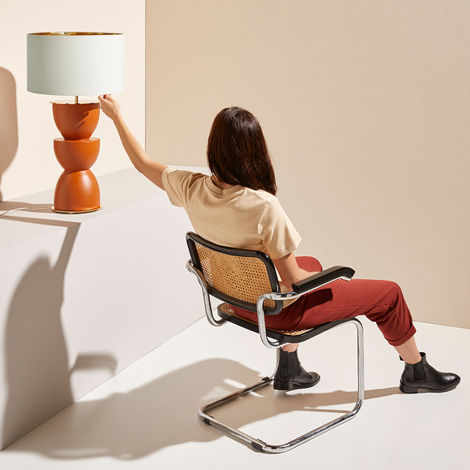 Настольная лампа Metric, отделка керамика terracota, матовая латунь, белый абажур, коллекция