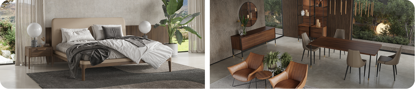 Мебель MOD Interiors создается совместно с международными дизайнерами, с учетом мировых трендов. При производстве используются премиальные материалы, такие как массив дерева, натуральный шпон ореха и дуба, экологичные ткани и экокожа.